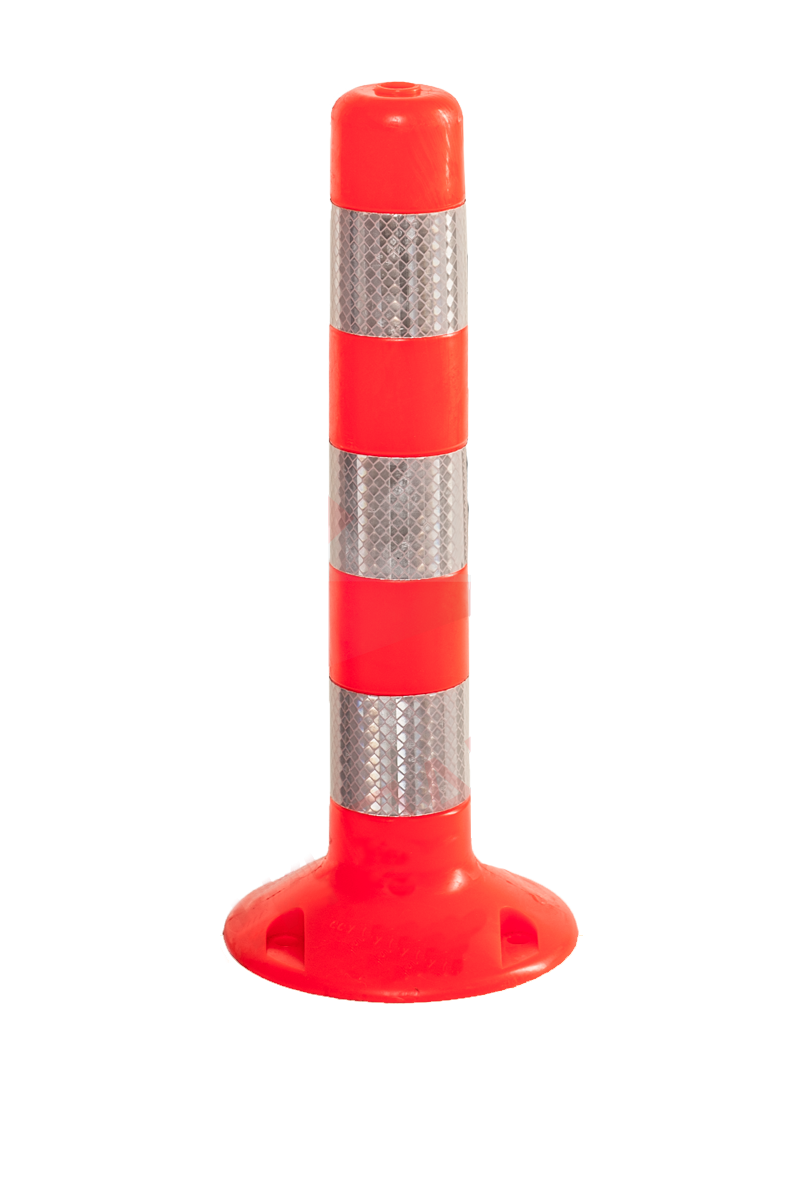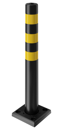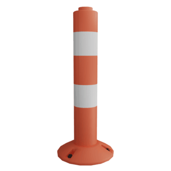 Flexible bollards are bollards designed to bend when struck by vehicles. They are typically made from synthetic plastic or rubber that is stiff on its own, but pliable under the weight of a car or truck. When struck, flexible bollards give way to some extent, reducing damage to vehicles and surrounding surfaces, and return to their original, upright position. Some flexible bollards do not provide physical protection from vehicles; rather they offer clear visual guidance for drivers. Other flexible bollards have been designed to provide physical protection as well as reduced damage by incorporating strong elastic materials. These can be all plastic or plastic/steel hybrids but combine varying degrees of stopping power and flexibility.